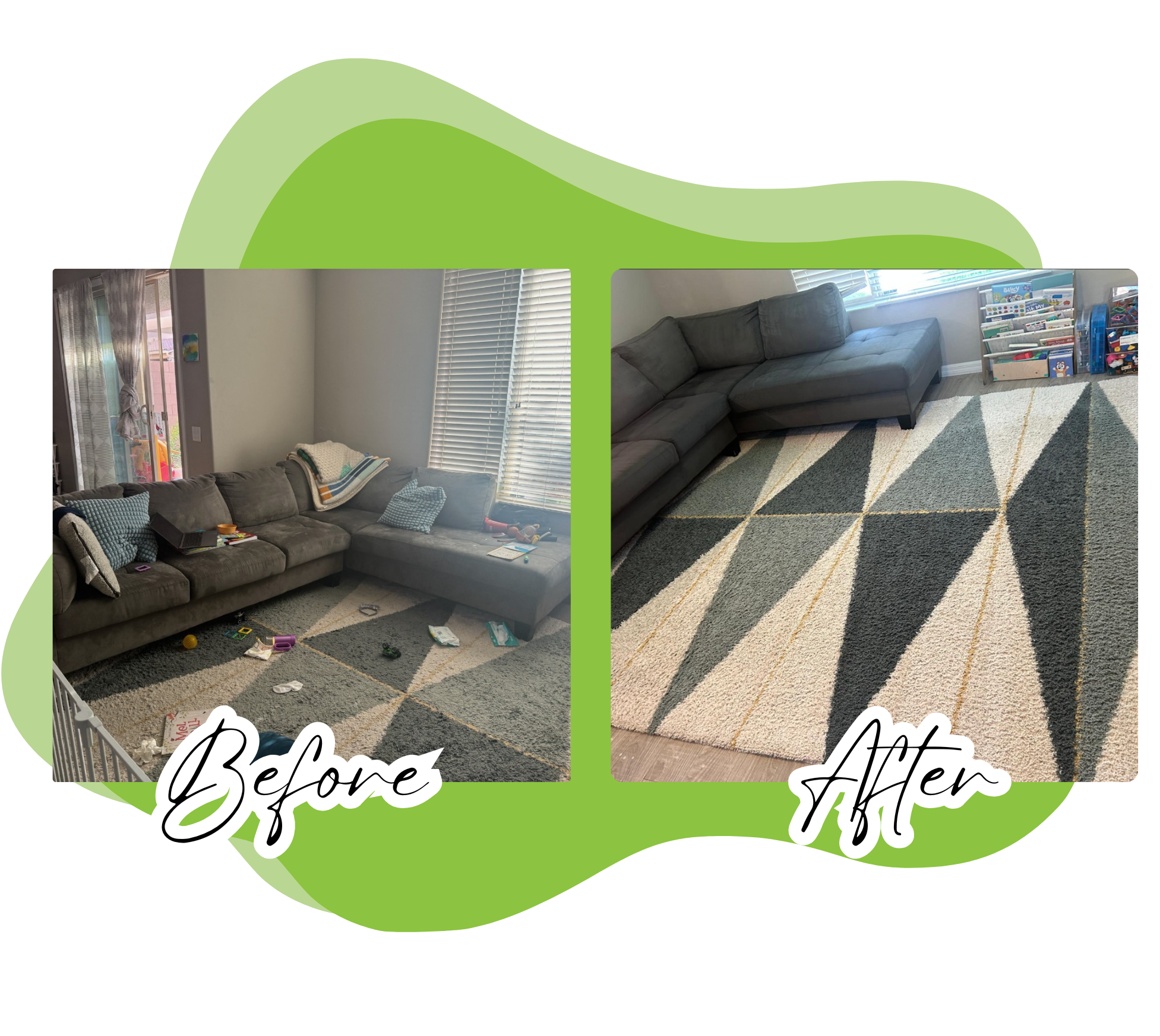 Our eco-friendly deep cleaning leaves your carpets, rugs, and floors looking beautiful and safe for your family & pets.